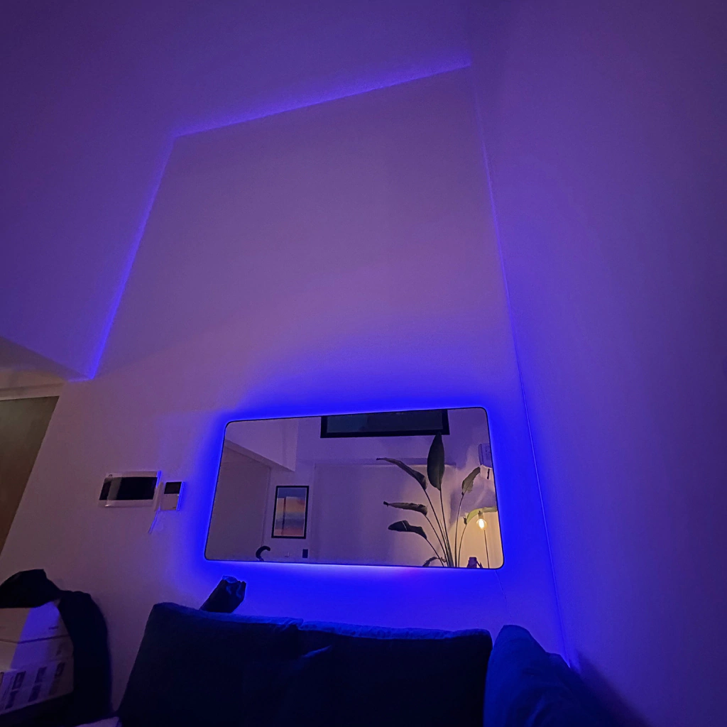 . Touch; la tira led es solo blanco calido, se maneja desde el espejo, funcion On Off y dimmerizable (regulacion de intencidad) viene con fuente y se enchufa a enchufe de pared. Sin control