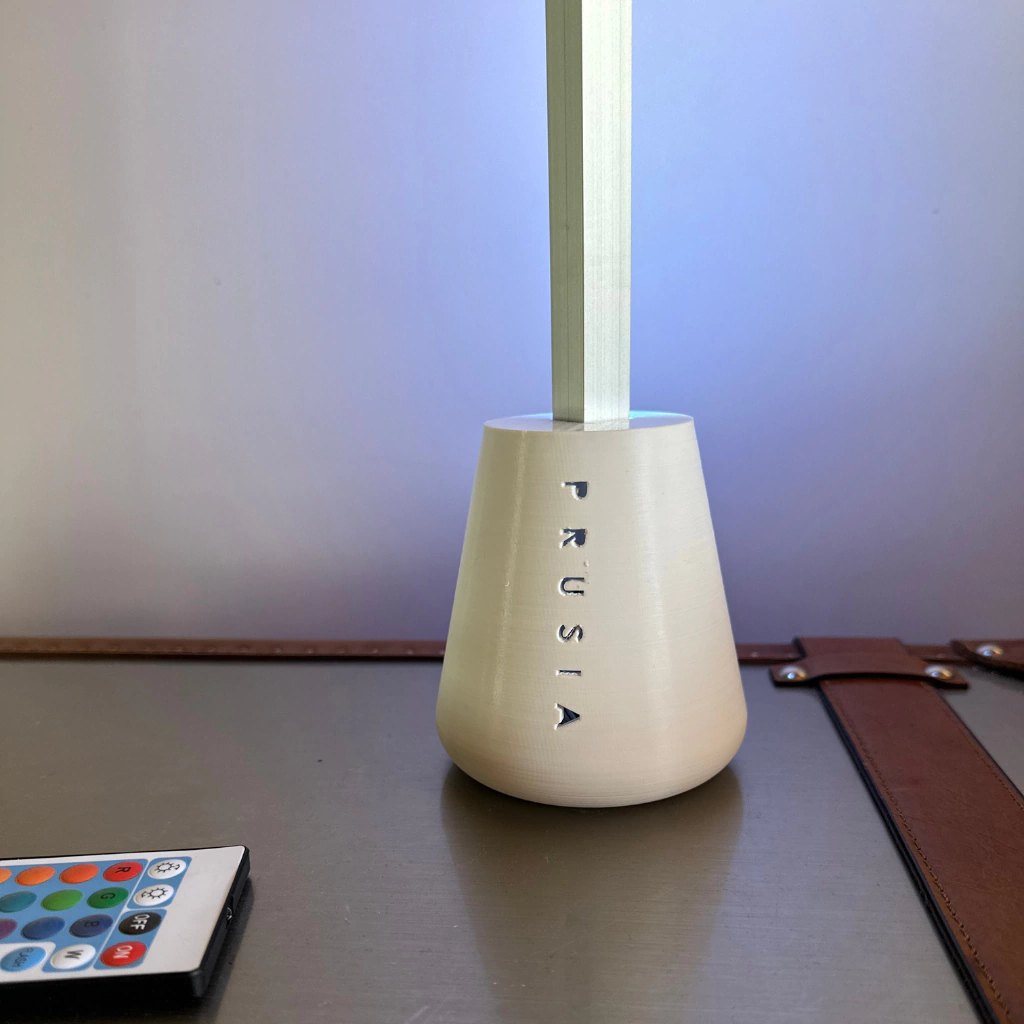 Materiales: La base es de PLA (imprecion 3D) y el pefil de aluminio plateado. Toda ésta lámpaa es biodegradable y ecosustentable ya que el led es de larga duracion y poco gasto energético, y el material de la base es eco friendly, hecho a base del maíz.